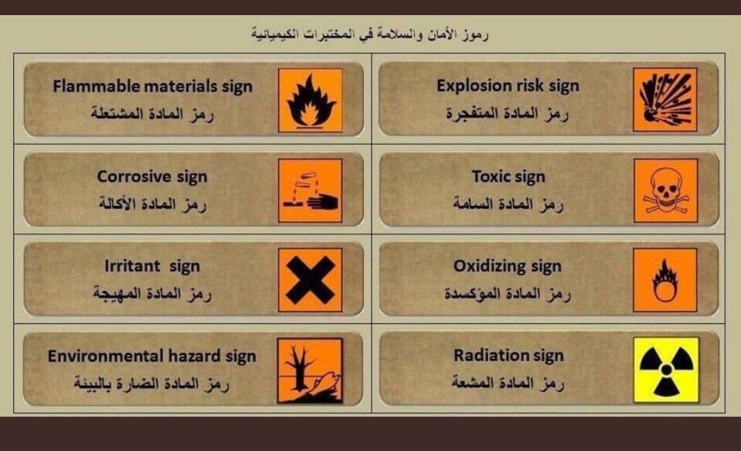 كيمياؤنا No Twitter رموز السلامة في المختبر كفايات كيمياء معلومات كيميائيه مصطلحات كيميائية