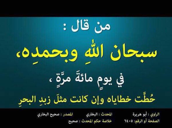 من قال سبحان الله وبحمده في يومه مائة مرة حطت خطاياه وإن كانت مثل زبد البحر لفلي سمايل