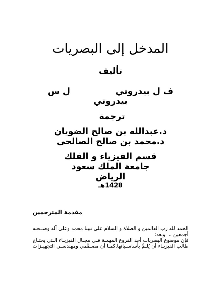 مقدمة كتاب البصريات 1